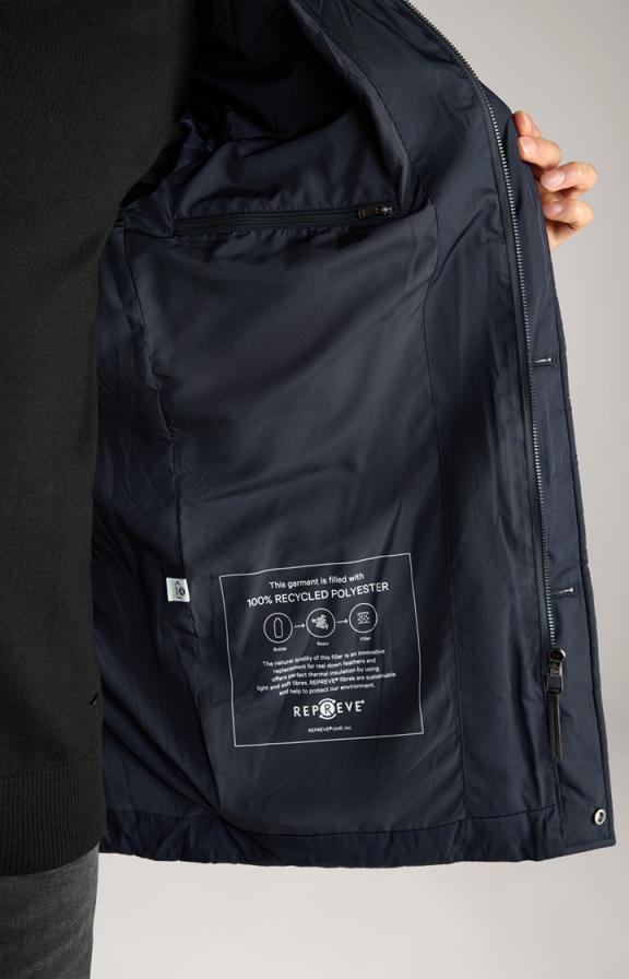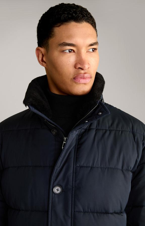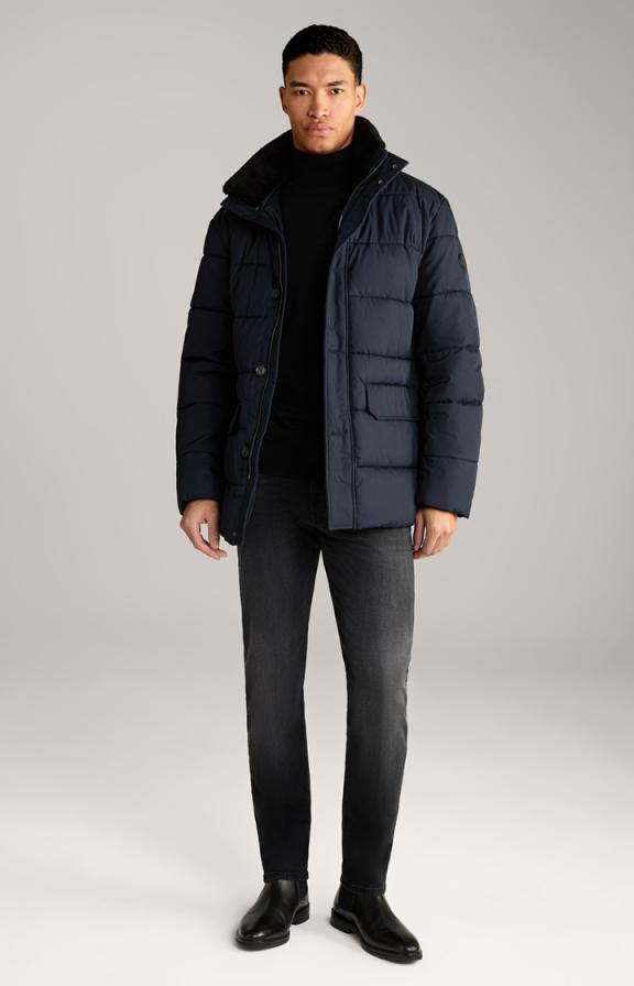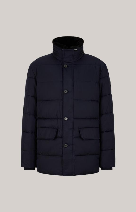 Im matten Nylon-Look mit Zip-Verschluss und logogeprägten Knöpfen überzeugt die wattierte Steppjacke Daros als Allrounder – funktional ergänzt durch Pattentaschen und inwendige Rippstrickbündchen. Smarter Eyecatcher: der Umlegekragen aus Faux-Fur.Mehr Details