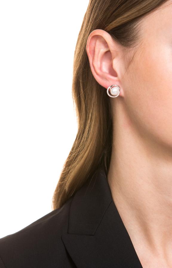 Kostbare Kleinode im stilvollen Design: Die aufwendig gearbeiteten Ohrstecker präsentieren sich mit ihrer raffinierten Komposition aus glänzendem Silber, funkelnden Zirkonia und einer sanft schimmernden Perle als glamouröser Blickfang. Die zwei verwobenen Ringe – einer mit weißen, fein geschliffenen Zirkonia-Steinen besetzt – unterstreichen die filigrane, feminine Optik der Ohrringe, in deren Mittelpunkt die edle, cremefarbene Süßwasserperle thront.Mehr Details