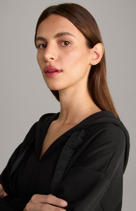 Lässige Stylings hebt der Hoodie im Baumwollmix mit Tunnelzug-Kapuze hervor – labeltypisch ergänzt durch ein breites Band im Logo-Design. Für Komfort sorgen überschnittene Schultern und gerippte Ärmelbündchen, während ein kleiner V-Ausschnitt und Eingrifftaschen das Item stimmig abrunden.Mehr Details